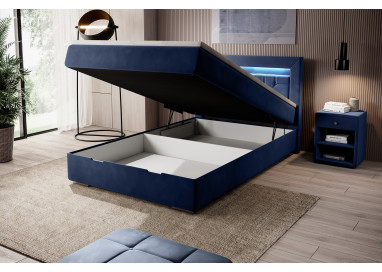 Das Boxspringbett Paris bietet neben hohem Komfort auch praktischen Stauraum dank geräumiger Bettkästen auf beiden Seiten. Das Bett verfügt zudem über ein blau leuchtendes LED-Licht am Kopfteil für eine angenehme Atmosphäre im Schlafzimmer. Es...